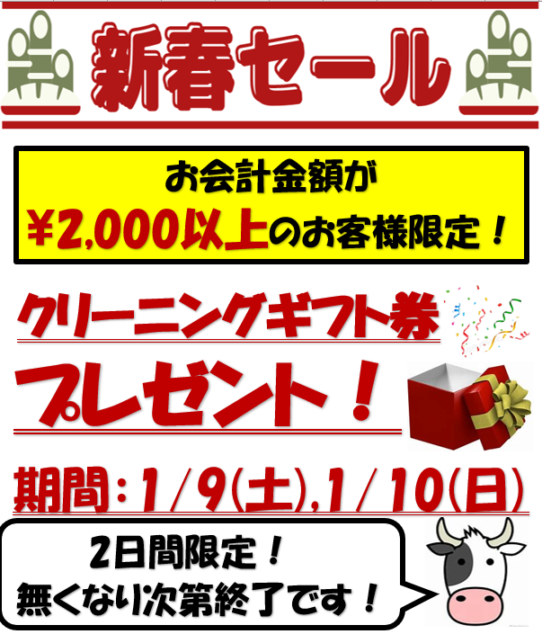 クリーニングの桃太郎3店舗で、新春セールを開催します🎉🎉🎉