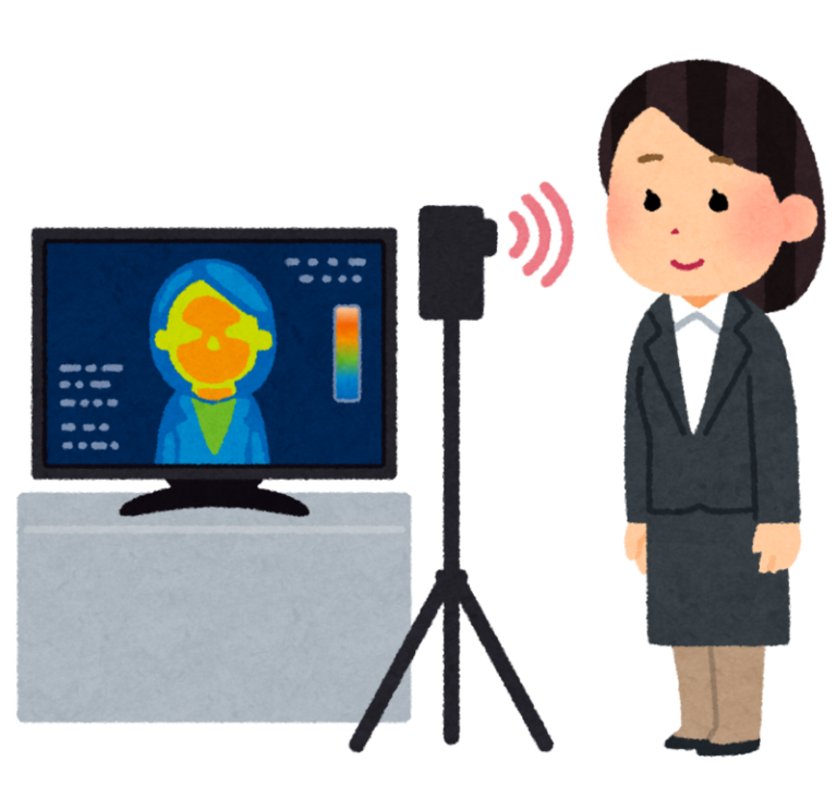 玄関入り口はいって右奥に、サーモグラフィーカメラを設置しております📷