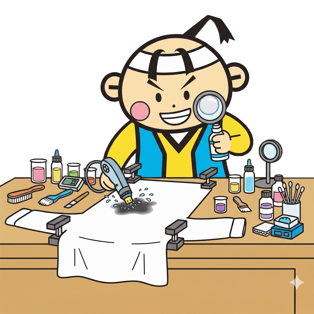 「あきらめない」をモットーに、どんなシミでもまずはチャレンジします。シミの種類、素材、経過時間を細かく分析し、最適な処理方法を選択。大切な一着を元の美しさに戻すため、一件一件丁寧に作業します。